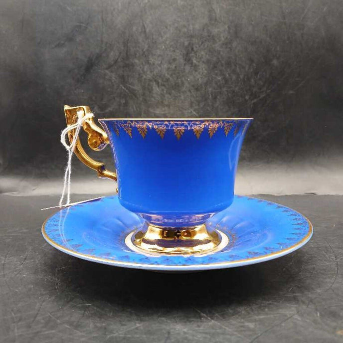 Antique German Cobalt Blue Porcelain Teacup and Saucer Set Circa late 1800s