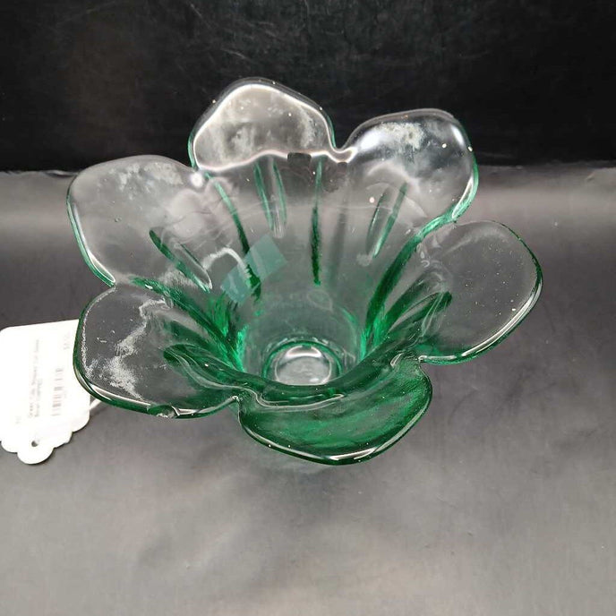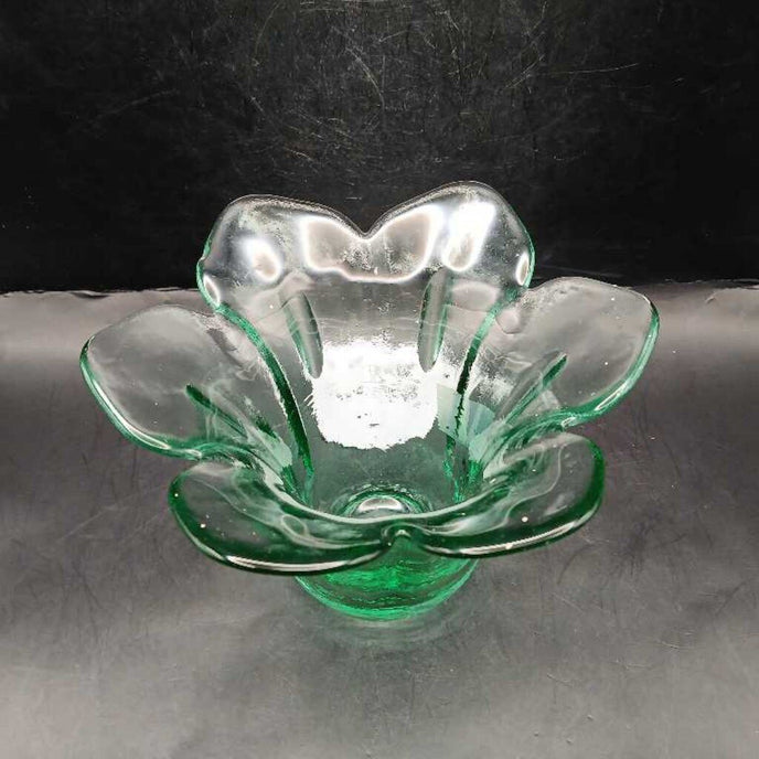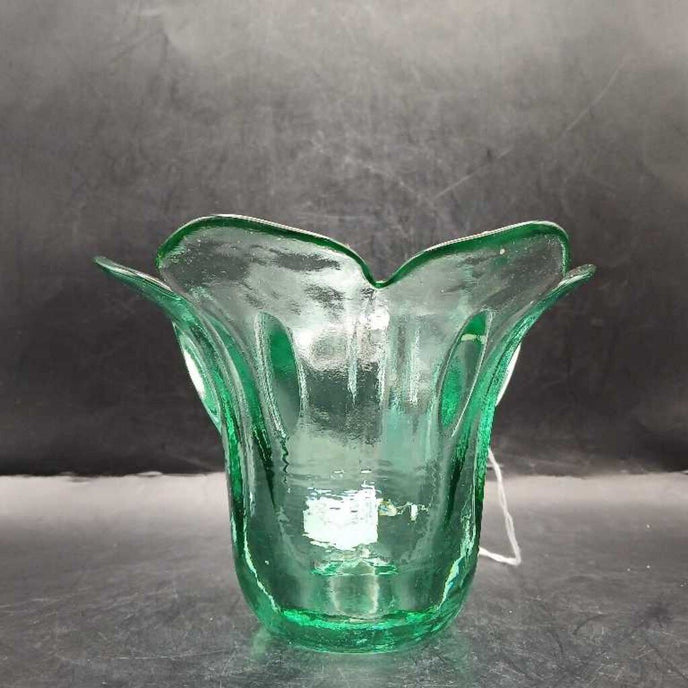 Green Tulip Shaped Cut Glass Bowl CHIPPED