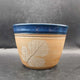 Handmade ceramic pot with leaf and blue rim SV Maker mark