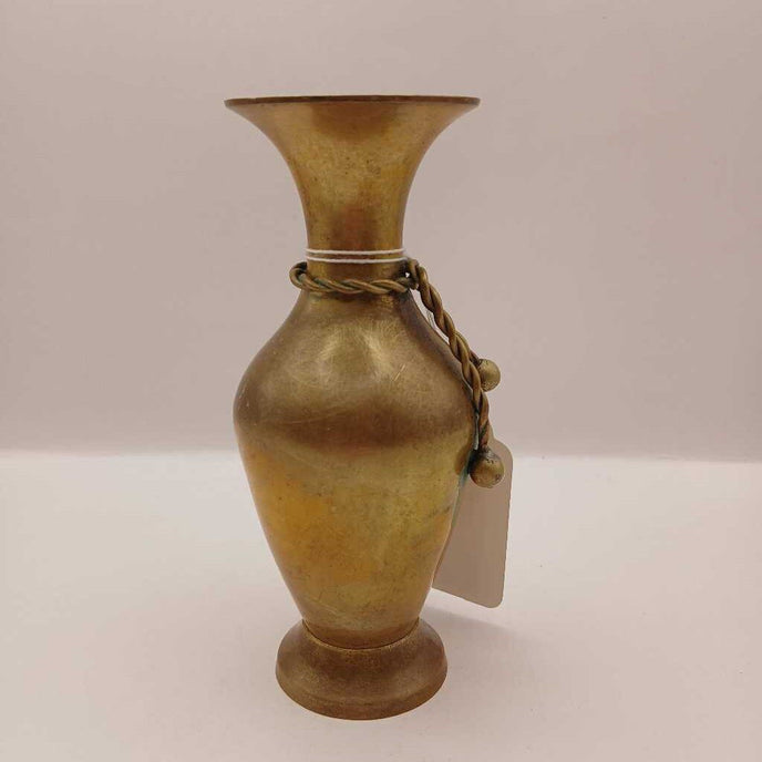 JC Vase Brass Flower Holder Bud Vase Braid Knotted Tassel India 6"