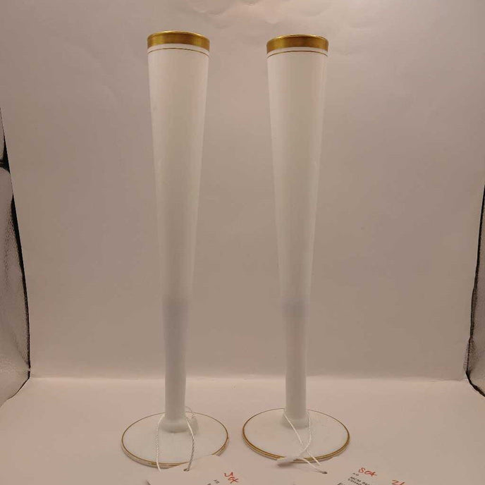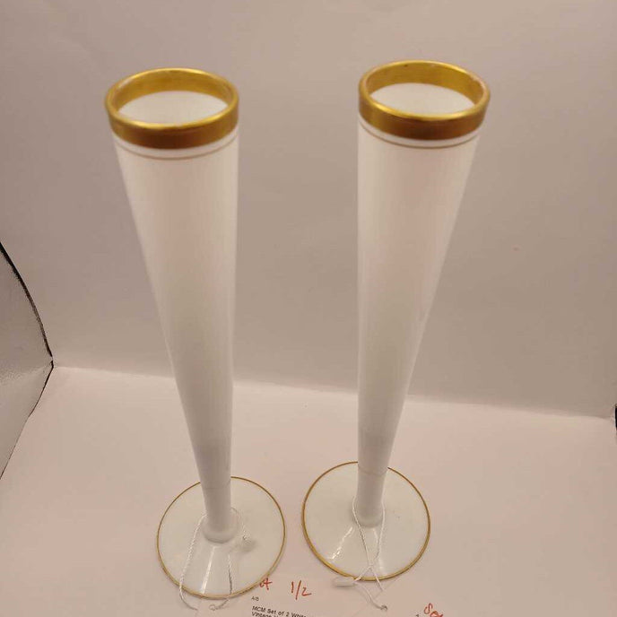 MCM Set of 2 White and Gold Vintage Vases (P)