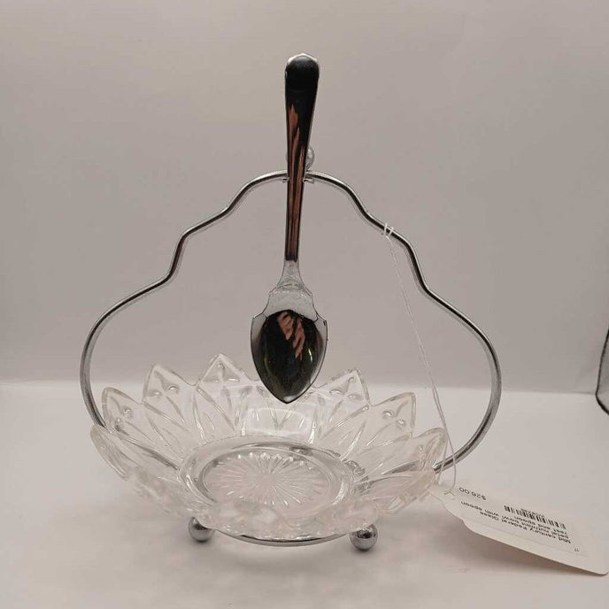 Mid century Federal Glass petal nut/mint bowl with spoon rest and spoon