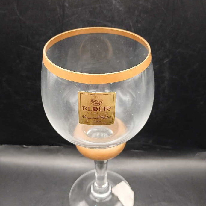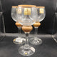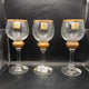 Set of 3 Block VINTAGE Blown Glass Optic Wine Goblet 9.5" Tall Gold Ball Stem