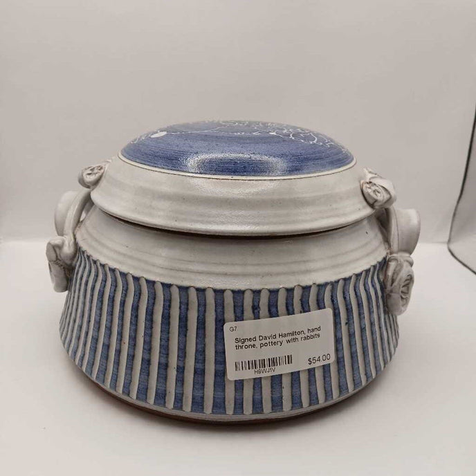 Signed David Hamilton, hand throne, pottery with rabbits