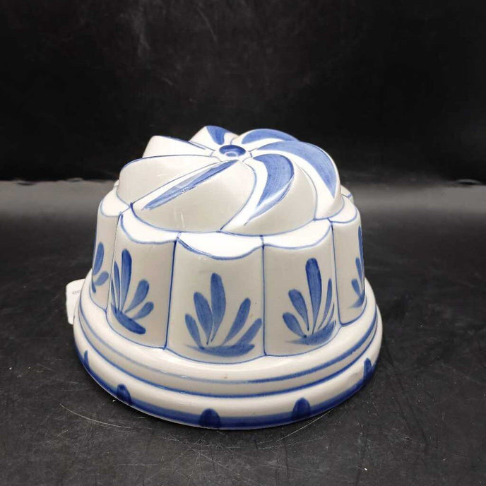 Small Porcelain Ceramic Bundt Cake Pan Blue White Country Farmhouse Wall Hanging