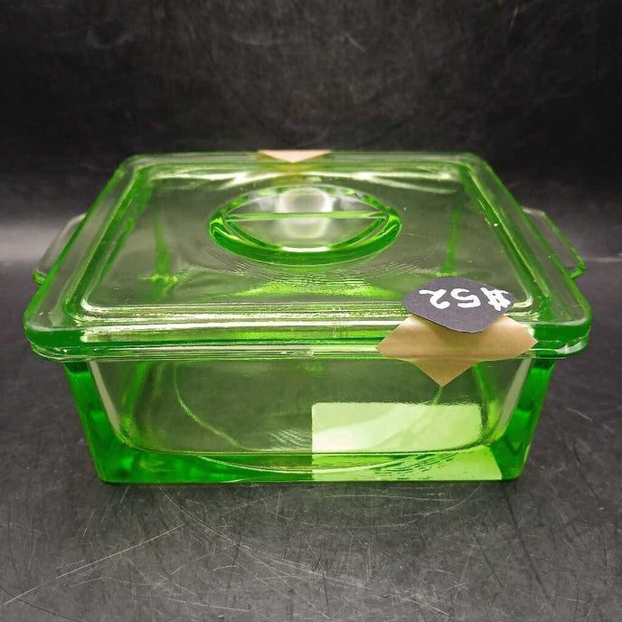 Uranium Vaseline Hazel Atlas Refrigerator Box with Lid