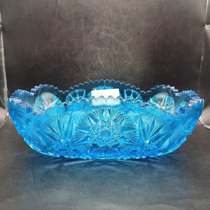 Vintage 1950s Temple Yutec Blue Cut Glass Bowl