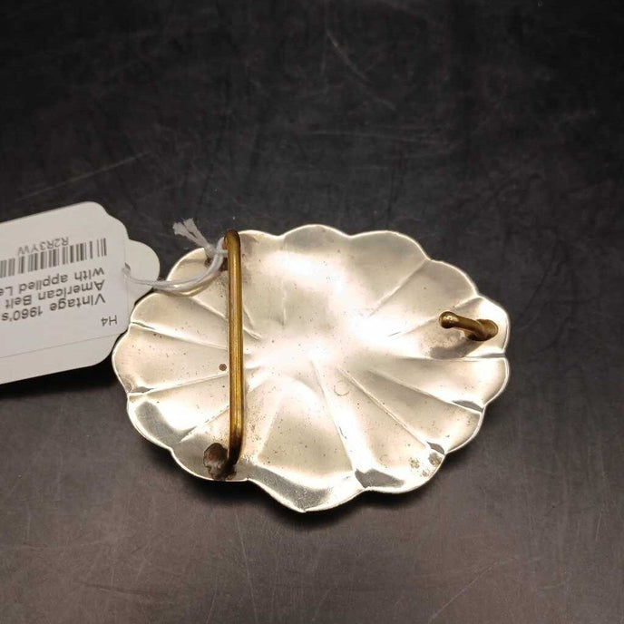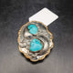 Vintage 1960's Native American Belt Buckle Sterling with applied Leaves and Natural Turquoise Nuggets