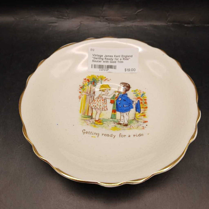 Vintage James Kent England "Getting Ready for a Ride" Saucer with Gold Trim