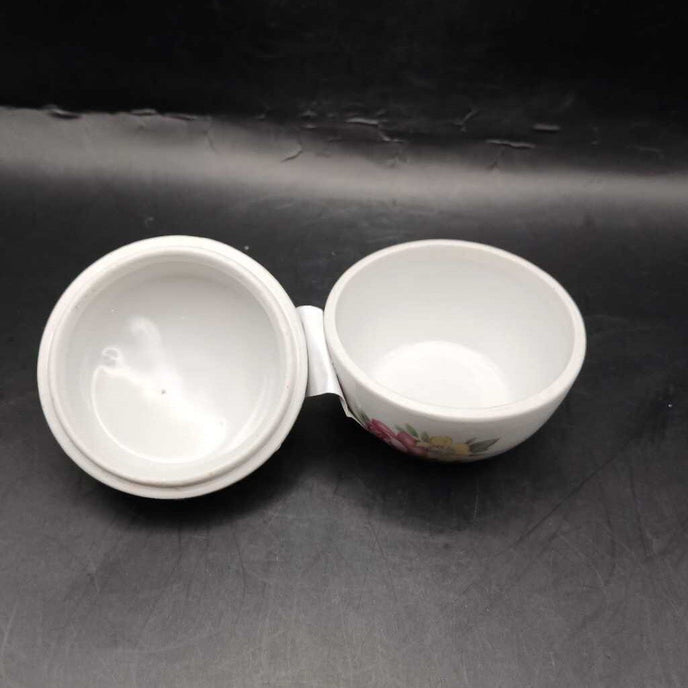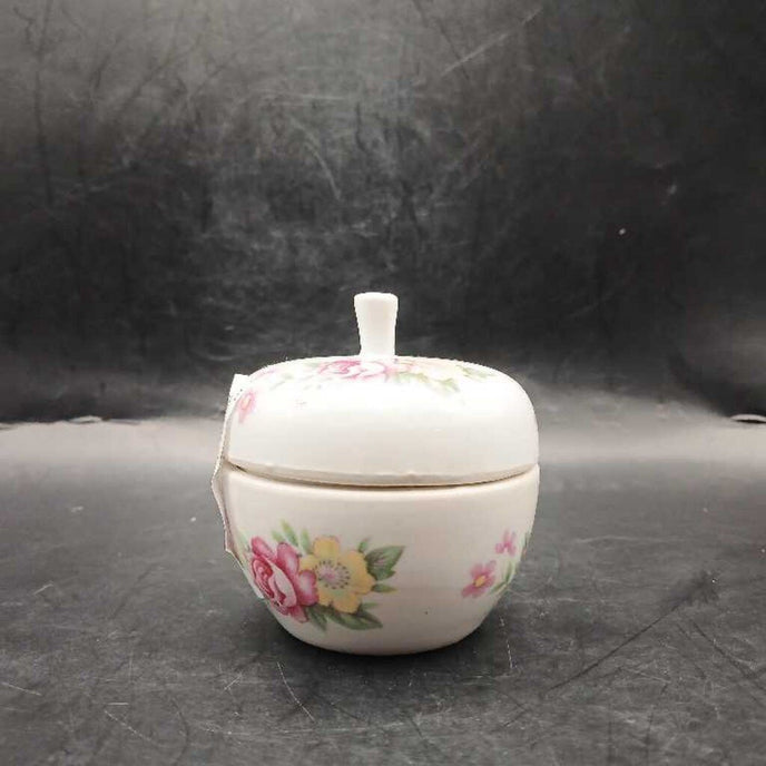 Vintage Small Round Covered Trinket Bowl with Pink Roses