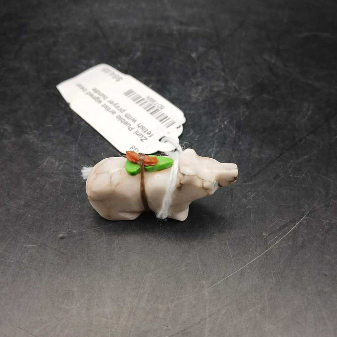 Zuni Pueblo artist signed bear fetish with prayer bundle
